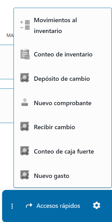 Al hacer clic en el icono de tres puntos, se desplegará una lista de accesos rápidos previamente configurados por el usuario, permitiéndole abrir funciones específicas con un solo clic.