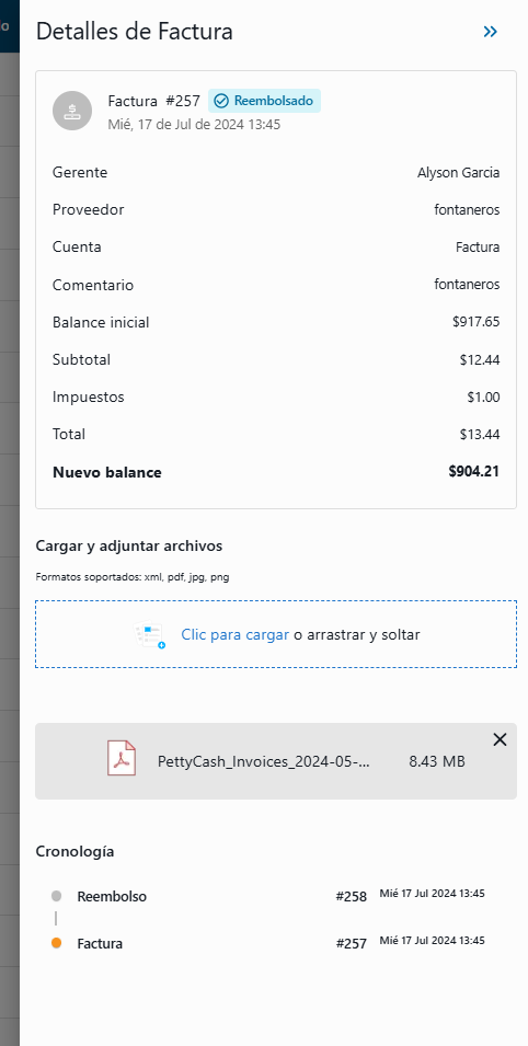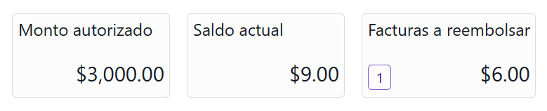 1. Monto autorizado, Saldo Actual y Facturas a rembolsar