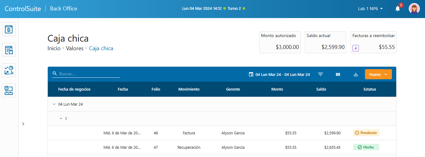 - Gerente: Nombre del usuario que ejecutó el movimiento.