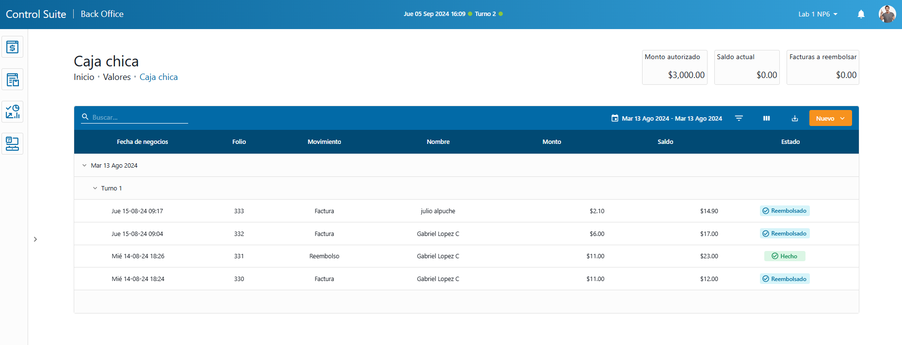 Caja chica movimientos