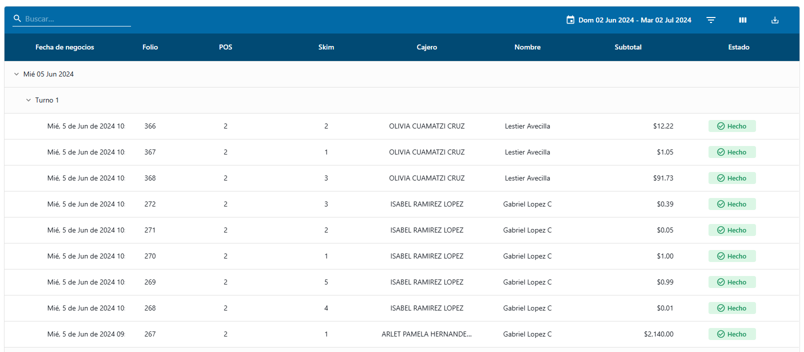 - Fecha de negocios: La fecha del sistema en que se llevó a cabo el movimiento en la sucursal.