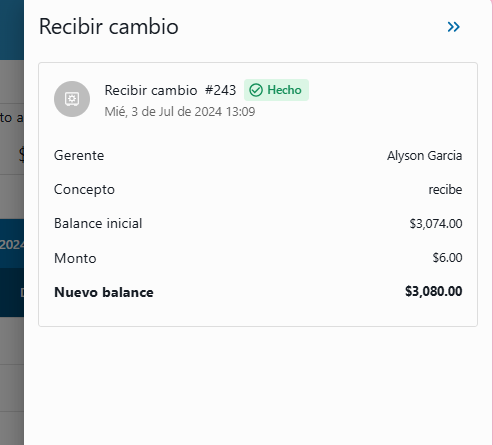 - Etiqueta de Estado: Muestra el estatus o estado del movimiento, en el caso de la caja fuerte los movimientos solo tendrán estado Hecho.