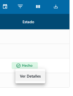 - Estatus: Muestra el estatus o estado del movimiento Pendiente, In progreso y Hecho.