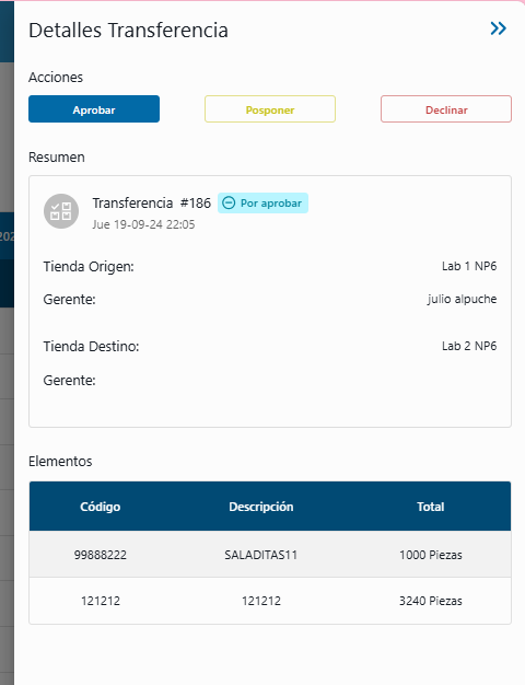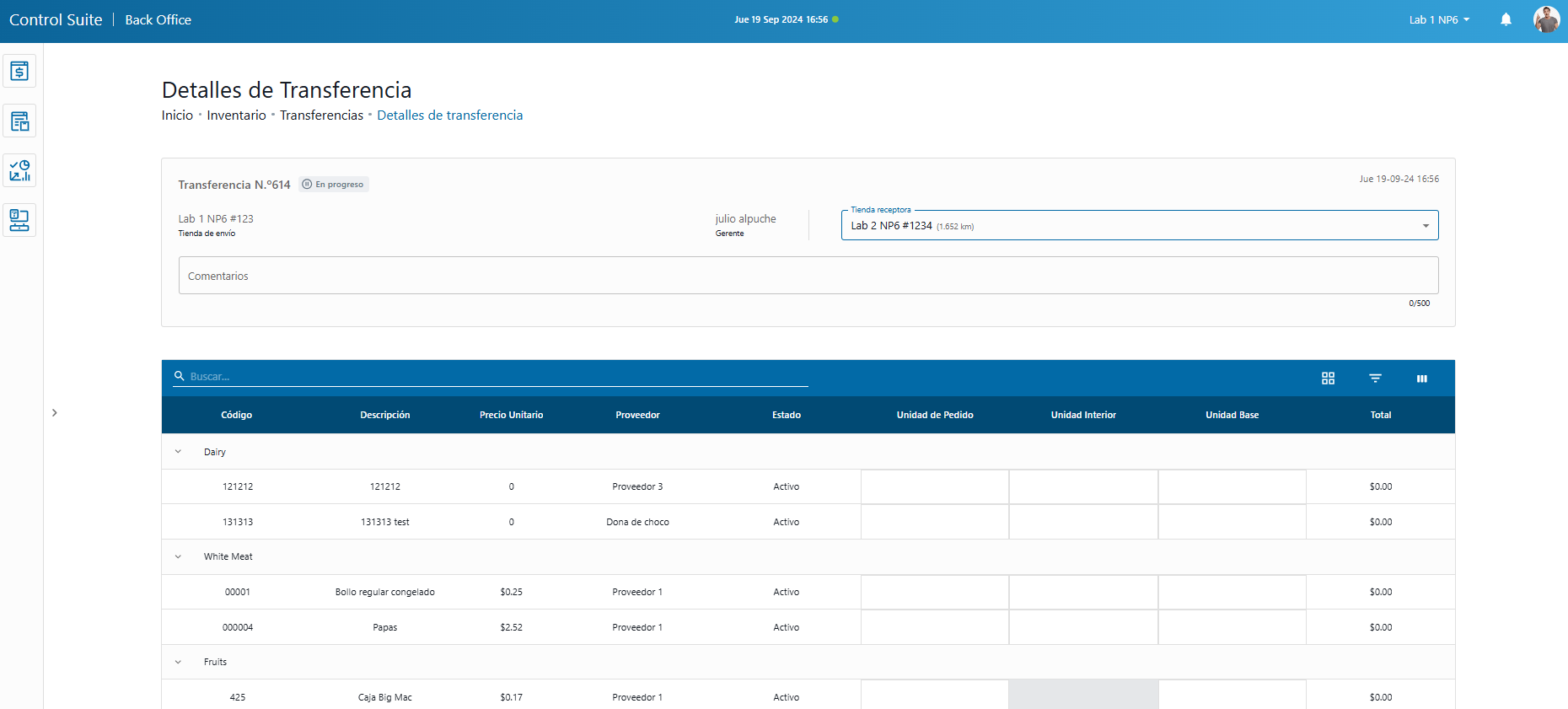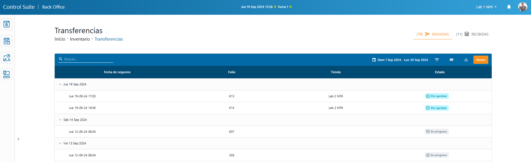 Portal de ayuda → Inicio de sesión→ Inventario → Transferencias