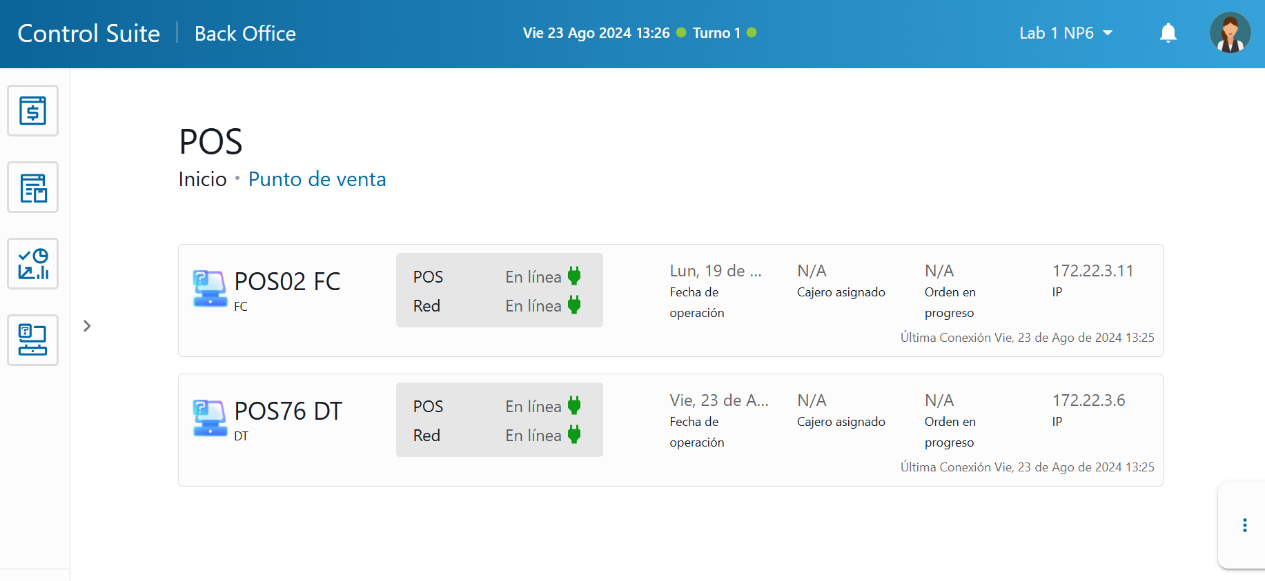 Este submódulo es una herramienta diseñada para proporcionar una vista en tiempo real del estado operativo de cada punto de venta (POS) de la sucursal.
