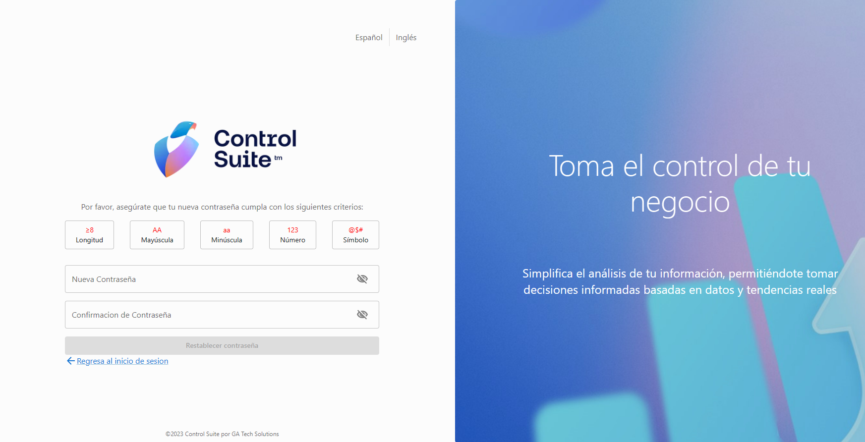 Portal de ayuda → Inicio de sesión→ Restablecimiento contraseña