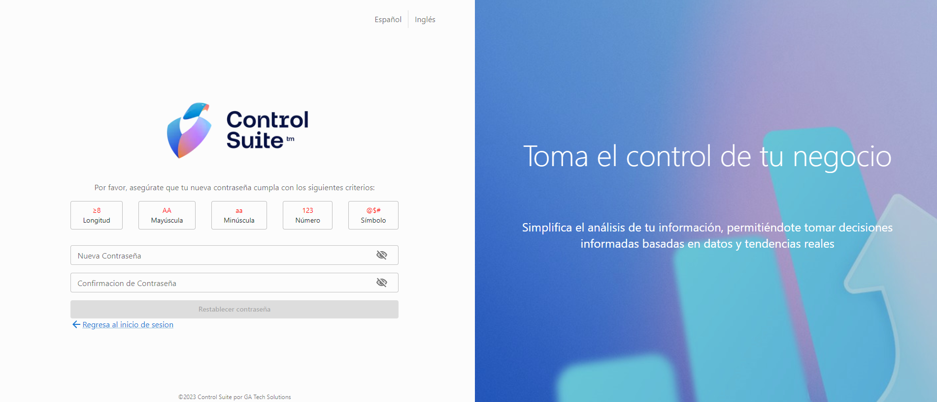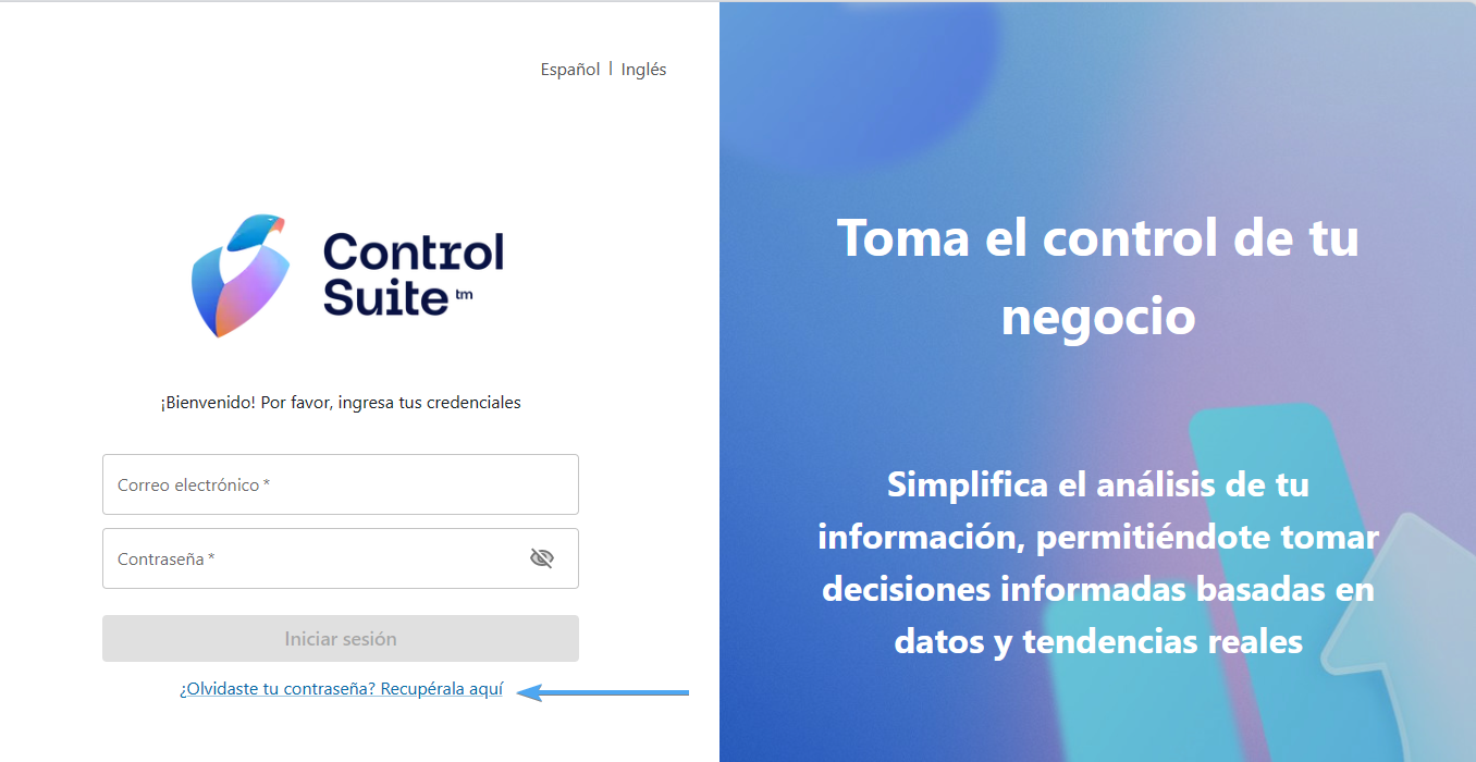 Primero, ingresa a la pantalla de inicio de sesión de ControlSuite® a través de este enlace: http://controlsuite.pro/login/