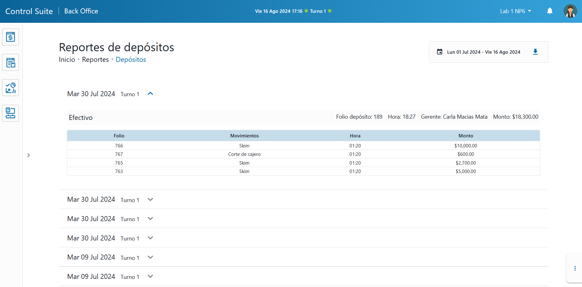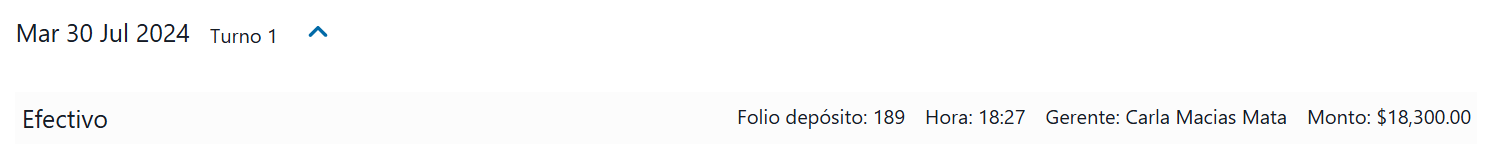 - Gerente: Nombre del usuario que realizó y confirmó el depósito a través de ControlSuite.