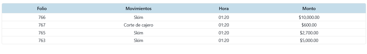 - Movimiento: Nombre del tipo de movimiento que conforma el deposito. ejemplo: Retiro, corte de cajero, ventas, etc…