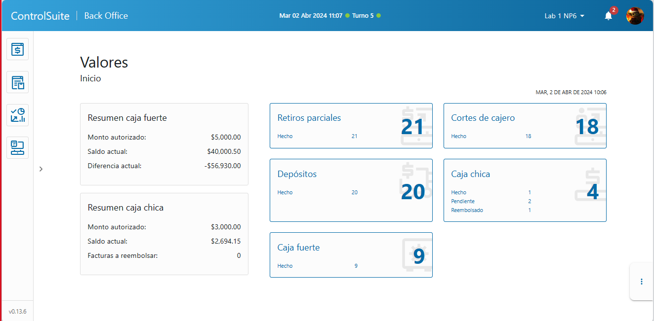 Resumen de caja fuerte: muestra el saldo actual de dinero almacenado en la caja fuerte.