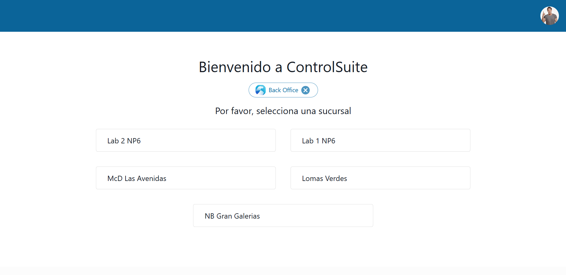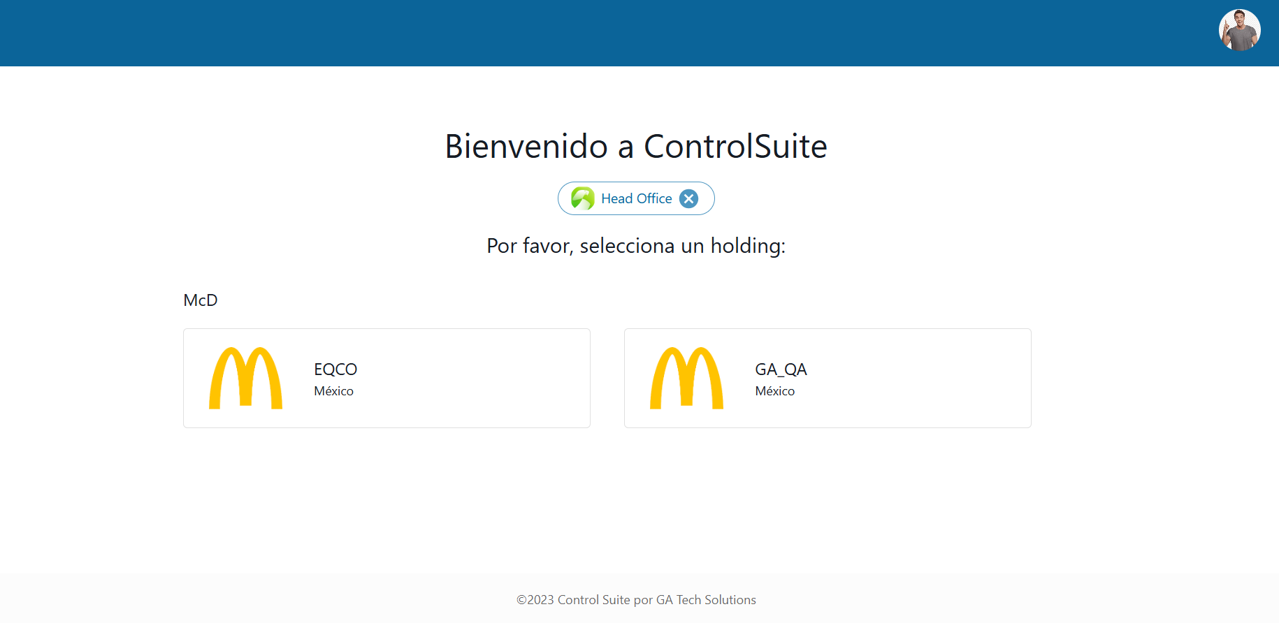 Después de iniciar sesión, el sistema te mostrará las aplicaciones disponibles, como HeadOffice o BackOffice, según las credenciales de tu usuario. Si solo tienes acceso a una marca y una aplicación, el sistema te redirigirá automáticamente a la siguiente pantalla.